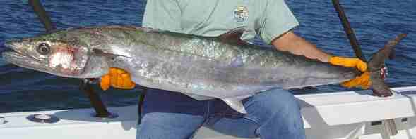 Spanish mackerel are very aggressive and easy to catch. They will eagerly take a DOA CAL on a jig head fished with a very fast retrieve, small spoons, or on fly tackle, any small fly resembling a glass minnow.