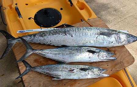 If you move in closer to the near-shore waters from about the 25-foot mark out to around the 75-foot mark around the bait pods; you can find tarpon, shark, king mackerel, bonito and an occasional cobia.