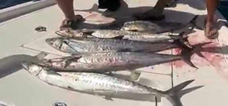 Slow trolling the 30 to 40 foot depths may hook you up with a Tarpon, Bonito, Spanish Mackerel or Kingfish. Most of the Kingfish will be in the 18 to 20 pound class with an occasional "smoker" king in the mix.