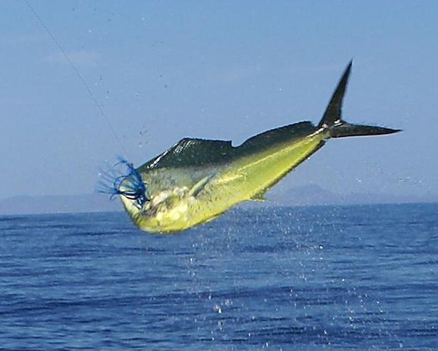 ![]() Dolphin in the 20 pound category are being taken by slow trollers using skirted ballyhoo rigs in the 250 foot depths.