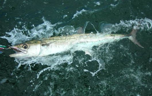 Most of the kingfish will be in the 10 to 15 pound range but 20 to 25 pounders along with an occasional 30 pounder are not uncommon. Look around the 40 foot depths near dropoffs from an outer reef. Usually the smaller kings will be near the surface chasing threadfin (Atlantic thread herring) during the morning. Later on in the morning and early afternoons, glass minnows come in and will attract Spanish mackerel and false albacore. These smaller predators in turn attract the larger kingfish.
