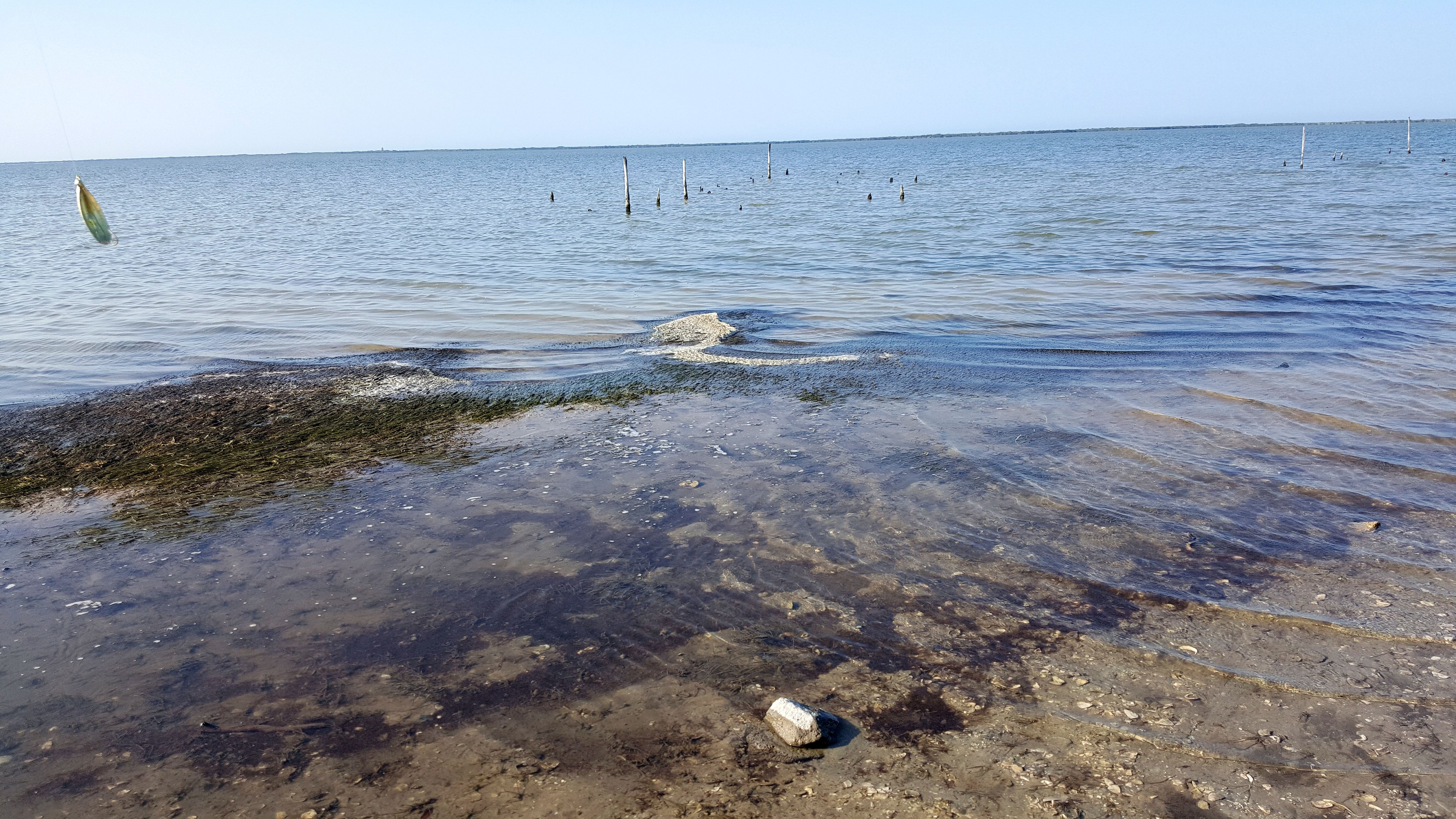 The best bet for hooking into a gator trout early in the morning or later in the afternoon close to dusk, is to fish a topwater bait just outside the bait pod. When the bite slows down, toss a live Croaker or large finger mullet under a Cajun Thunder type float. This year the water is low and discolored a dirty brown from the brown algae bloom and the fish have not showed up in the creeks in the same numbers.