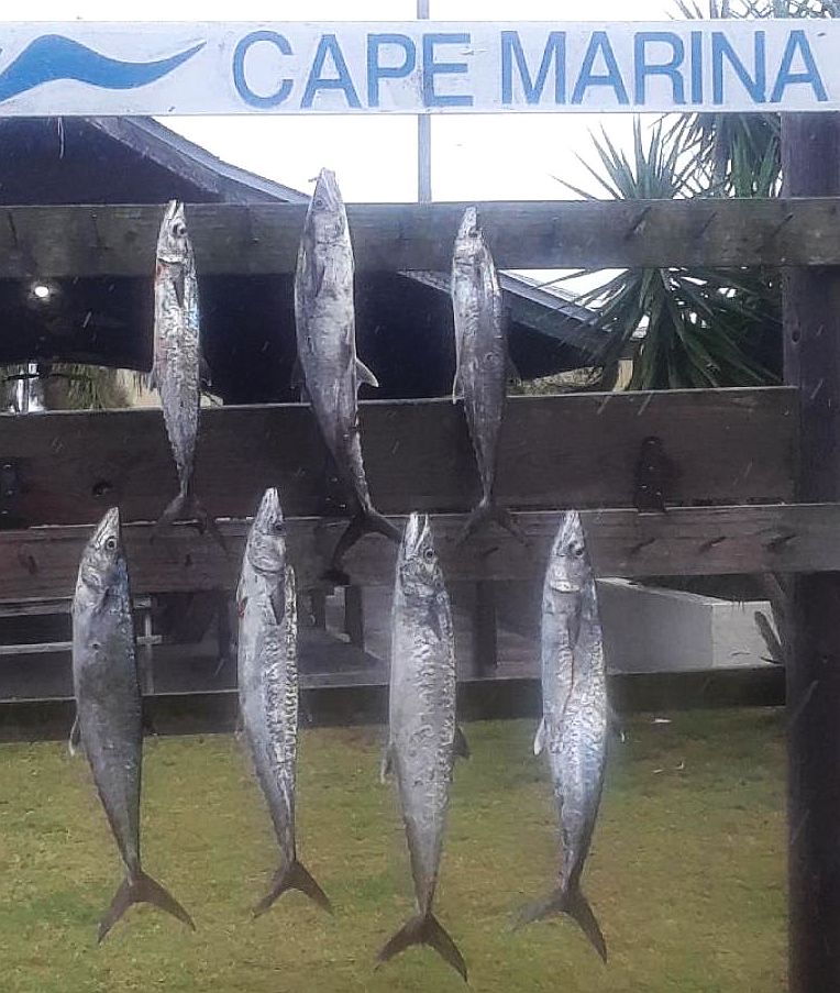 Scattered cobia are being caught in 70 to 90 feet of water over the reefs and wrecks on jigs.
