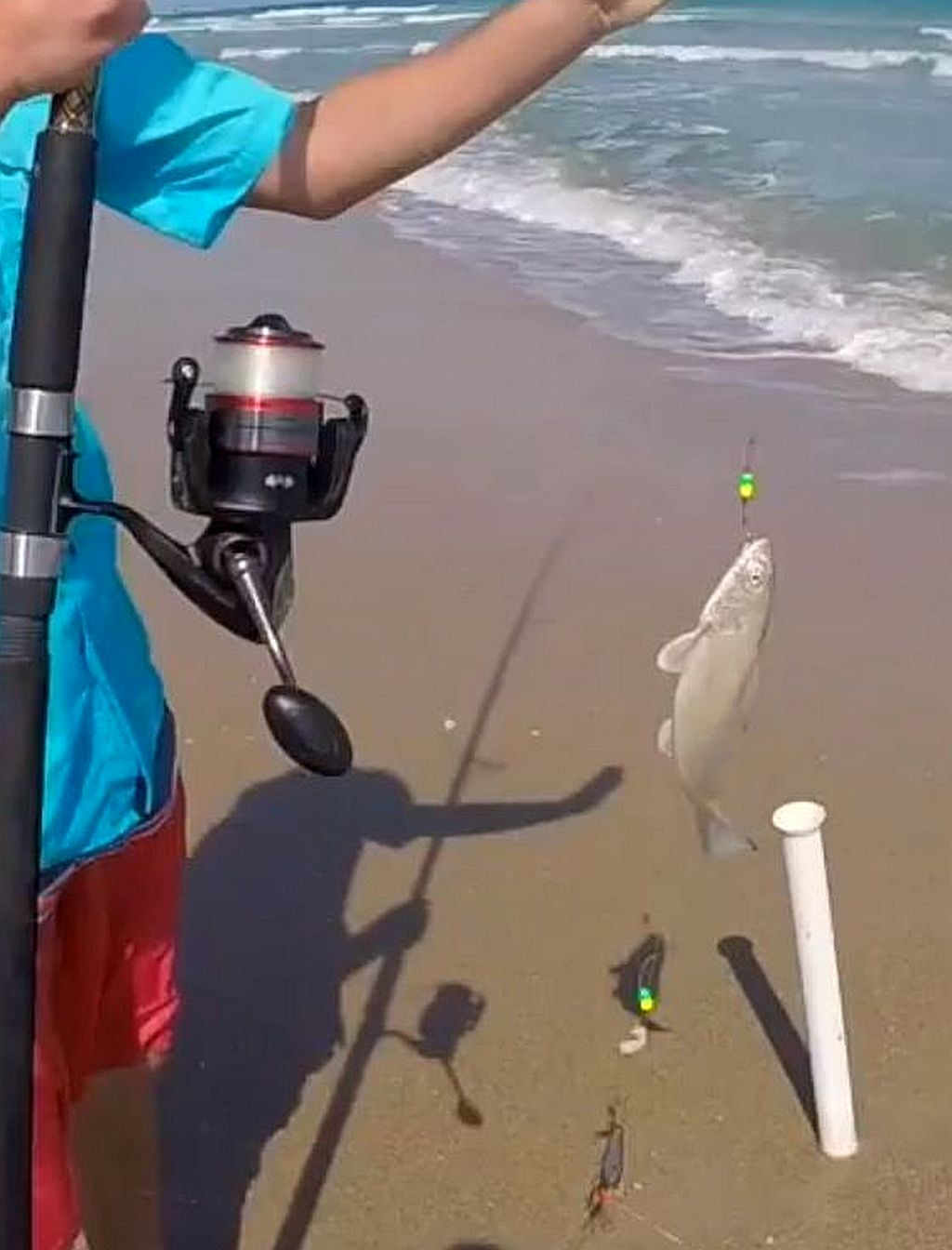 During low tides, the fish move out into deeper water just outside of the sandbars where longer casts are needed to catch them. Live sand fleas, small pieces of fresh cut clam, small pieces of shrimp, or Fishbites are all baits of choice for pompano.