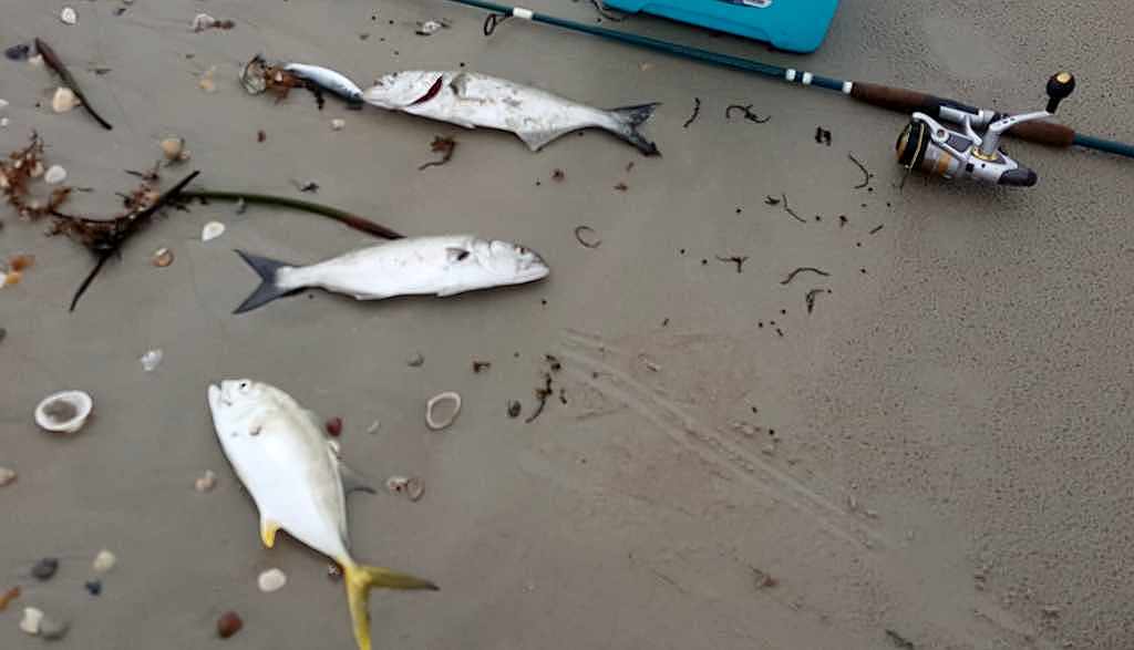 Bull sharks in particular can always be found along the beaches in our area. During the summer months, they swim into the Indian River and other estuaries to bear their young and during the spring and fall baitfish migrations, they can be found in the surf chasing the mullet up and down the beach.