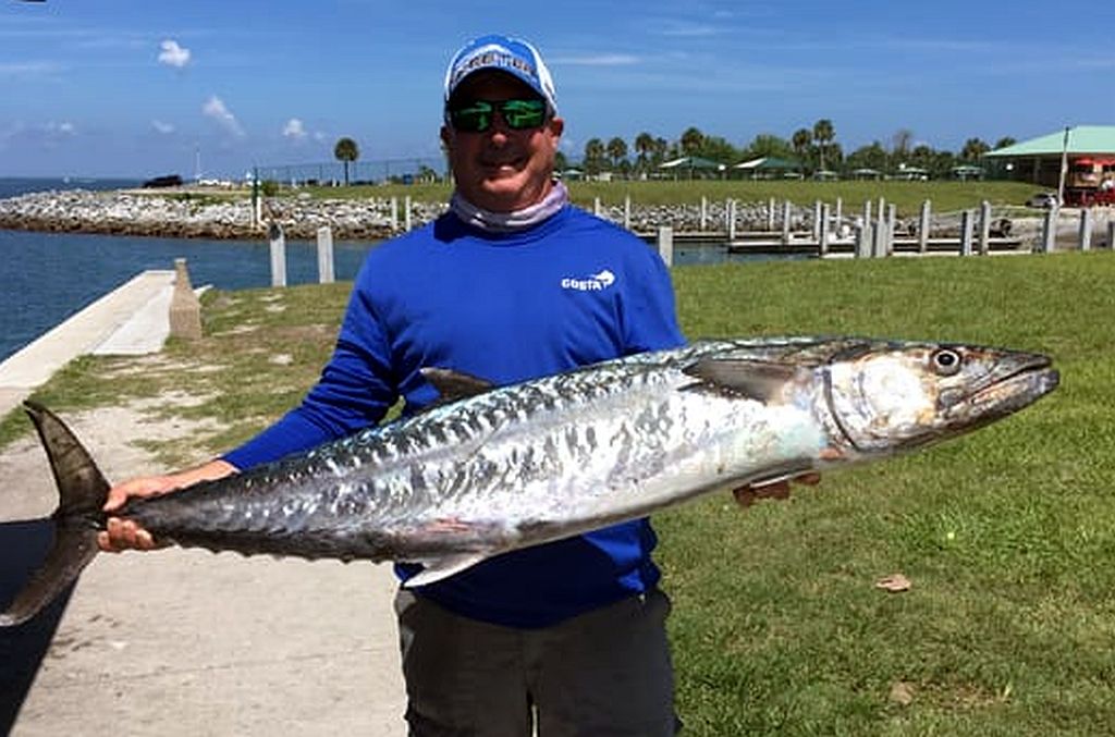 We are fortunate that the king mackerel bite in our area is good the year round. Slow trolling with live pogies, mullet, greenies, or pilchards on the 70 to 90 foot reefs and wrecks anywhere from Sebastian all the way up to Ponce Inlet typically yields good numbers of king mackerel, especially this time of the year. Right now it's smoker season on the Space Coast. During the summer months around the new or full moons, the larger smoker kings in the 25 to 40 plus pound range move in closer to the beach and can be caught in less than 10 feet of water, especially when the bait fish are in tight to the shoreline. The inlet tide lies, the Canaveral sipping channel, and bait pods in less than 40 feet of water are great places to troll your live bait for kingfish this time of the year. Anglers targeting the larger kings have been slow trolling ribbonfish right in the prop wash or on a downrigger over bait pods, near reef structures, or along the drop-offs coming in and out of the channels and along the tidelines. ![]() During this time of the year, cold water upwellings often move into our region and push the fish inshore; so if the fish aren't on the deeper reefs, move closer inshore. Better yet, with the current price of fuel, check the inshore spots first before you run out deeper to save some fuel. During the summer months out of Port Canaveral, always try for kingfish in the midway depths between 20 and 45 feet, as well as the 80 to 90 foot reefs farther out. The average king mackerel for our area is around 15 to 25 pounds, but we have a lot of fish pushing 30 to 35 pounds. Smokers over 40 pounds are not uncommon this time of the year and we can expect to see a lot more of them coming in as we get into the full moon this month. When slow trolling live baits this month, keep an eye out for Cobia, especially if we get a cold water upwelling. The cooler water could push a cobia up into your spread. The wrecks and reefs in the 60 to 90 foot depths out of Port Canaveral are holding some smaller size cobia. Targeting Pelican Flats and the 8A out of Port Canaveral, the 9 and 12 mile reefs out of Ponce Inlet, and the Pines and High Bar out of Sebastian is a good bet for cobia this month. Mangrove snapper are schooling up for their spawn right now in all the same areas where you catch king mackerel. The Party Grounds, East 11, and Site 12 out of Ponce; Chris Benson in between Ponce and Canaveral, 8A and Pelican Flats as you get closer to Canaveral, and the High Bar and Pines out of Sebastian are all good places to target Mangrove Snapper. ![]() Chumming with bits of sardines or herring and then floating a bait back into the chum is typically the best way to catch the bigger mangroves in these areas. Getting the bigger fish to come off the bottom into the water column keeps you from getting broken off in the structure. Most of the mangrove snapper have been running in the 3 to 5 pound range but 10 pounders are possible every day of the week right now. The inshore the shark bite is still on fire in our near coastal waters. Spinner sharks, hammer heads, sharpnose, black tips, bulls, nurse, and fine tooth sharks are all being caught on inshore rigs even if you aren't targeting them. Even in the lagoons you can find bull sharks hanging around the schools of tarpon and the baitfish pods. Good numbers of tarpon are running along our beaches right now feeding on mullet, croakers, pigfish, pogies and just about anything they come across. For the next few weeks you will have an opportunity to catch big tarpon anywhere inside of the 50 foot depths in our area. Slow trolling or drifting a live bait on an R&R float through the bait pods first thing in the morning close to the surf break can hook you up with a 150 pound class tarpon this month. Farther offshore in deeper water, you can find the tarpon hanging around the bait pods. For the next few weeks in our area, anglers will have an opportunity to catch a big tarpon anywhere inside of the 50 foot depths. Although snook are out of season right now, they are always on the menu for catch and release. A good way to locate them is to drop a live bait down to the bottom on a slip sinker or a knocker rig. A lot of guys use a jig head with a pilchard hooked through the top of the mouth to catch snook around the rocks. This method gives the angler more control of the bait. Most of the snook being caught right now are running in the 30 to 40 inch category, and there are a lot of them out there. At Port Canaveral, the snook have been hanging inside the Port along the bridge pilings and the corners or the sea walls. In the daytime, the key to catching them is to use live baits like croakers, pogies, or jumbo shrimp. The fish have had almost every lure known to man tossed at them and will seldom hit during daylight hours. At night when fishing around the inlets and bridge pilings, lipped diving plugs and hair jigs work almost as good as live baits. Surf Fishing During the summer months, whiting is the main species targeted by surf fishermen along Space Coast beaches.When summer temperatures heat up, so does the surf bite. Whiting, croakers, lookdowns, juvenile black drum, snook, and a variety of sharks become targets of surf fishermen. When the bait pods start to show up tight against the sand; snook, tarpon, bluefish, mackerel, and sharks will follow. A lot of anglers in our region like to use light tackle 7 1/2 foot "river rods" with knocker rigs or sliding sinker rigs to fish for whiting in the near shore troughs. Sand fleas are the best bait for pompano and whiting, but fishbites, fish gum, and small live or pieces of peeled fresh dead shrimp also work well. Among the worm rock shorelines at Patrick SFB and the rocky jetty at Port Canaveral, some nice mangrove snappers, snook, and flounder are being caught. Live mullet and fresh cut baits on a fish finder rig have been producing around the bait pods.