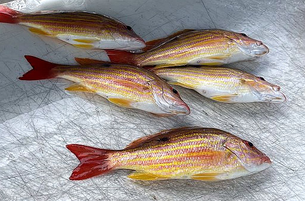 Target lane snapper in 120 feet of water or less with either cut baits or live baits. The fish aren't really very picky right now.