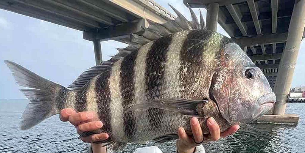 inches above the sinker with a fresh sand flea or small piece of shrimp is all you need to start catching sheepshead.