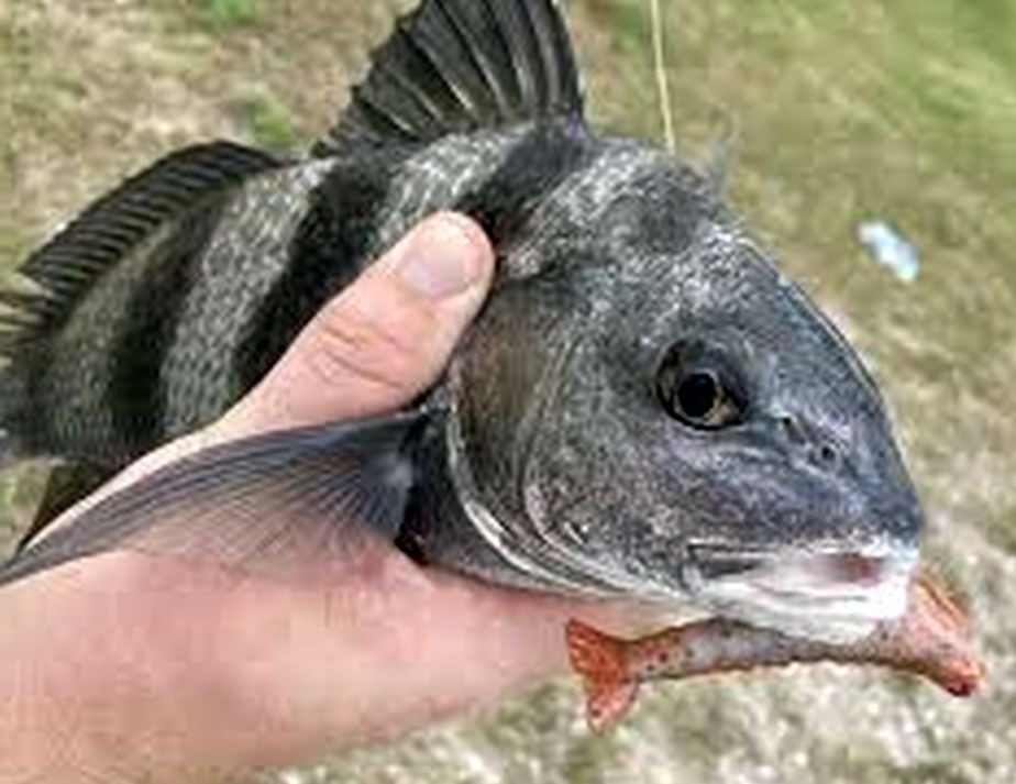 The black drum have been eating shrimp, sand fleas, and cut blue crab fished on or just off the bottom.